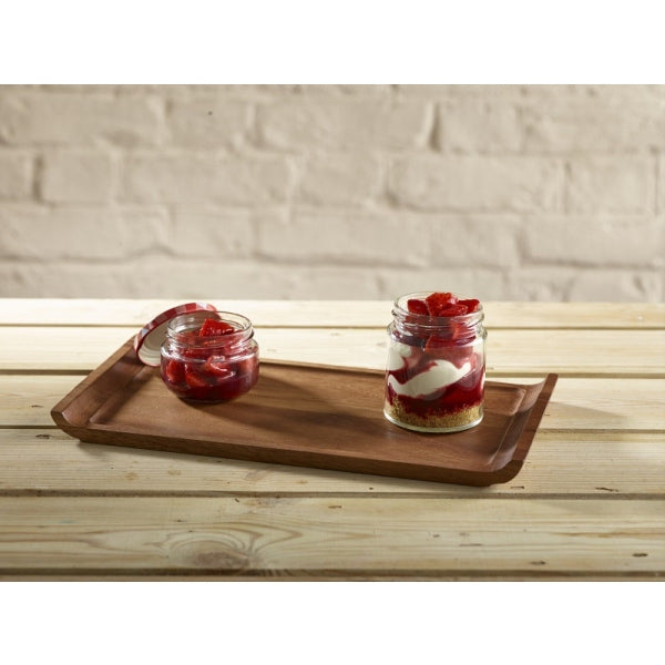 Crafted from A-grade natural acacia wood, these rectangular trays feature raised curved ends that help secure food during service and add an elegant shape to your tabletop display. Designed for buffets, cafés, catering, and restaurant tabletops, they’re perfect for presenting breakfasts, desserts, mains, or drinks with style.
