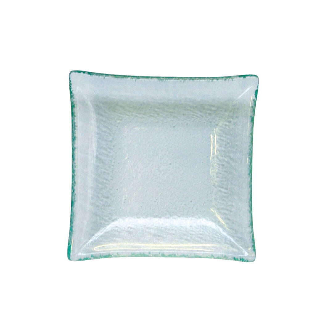Handcrafted from clear soda lime glass, this compact square dish features softly curved edges and a subtly textured finish that enhances light and visual appeal. Ideal for serving butter, condiments, or small accompaniments, it adds a refined touch to both hospitality settings and modern home dining.