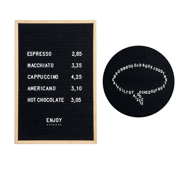 - Complete set of 256 acrylic letters, numbers, and symbols for menu boards and signage displays.