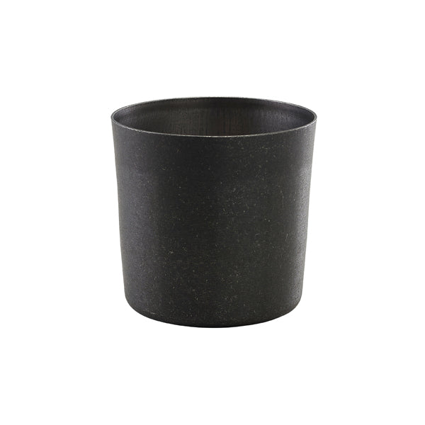 This black vintage stainless steel serving cup is designed for professional catering and hospitality environments, offering a durable and visually striking way to present individual sides, snacks, and accompaniments. Its industrial matte black PVD-coated finish creates a rugged, contemporary aesthetic suitable for modern food presentation.