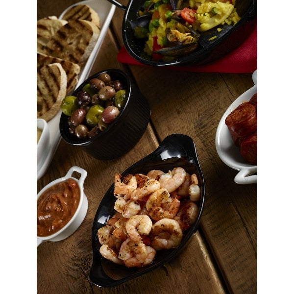 Black Stoneware Oval Eared Dish 22cm, Gloss Finish Serving Bowl 260ml (Set of 4) for Catering & Table Presentation
