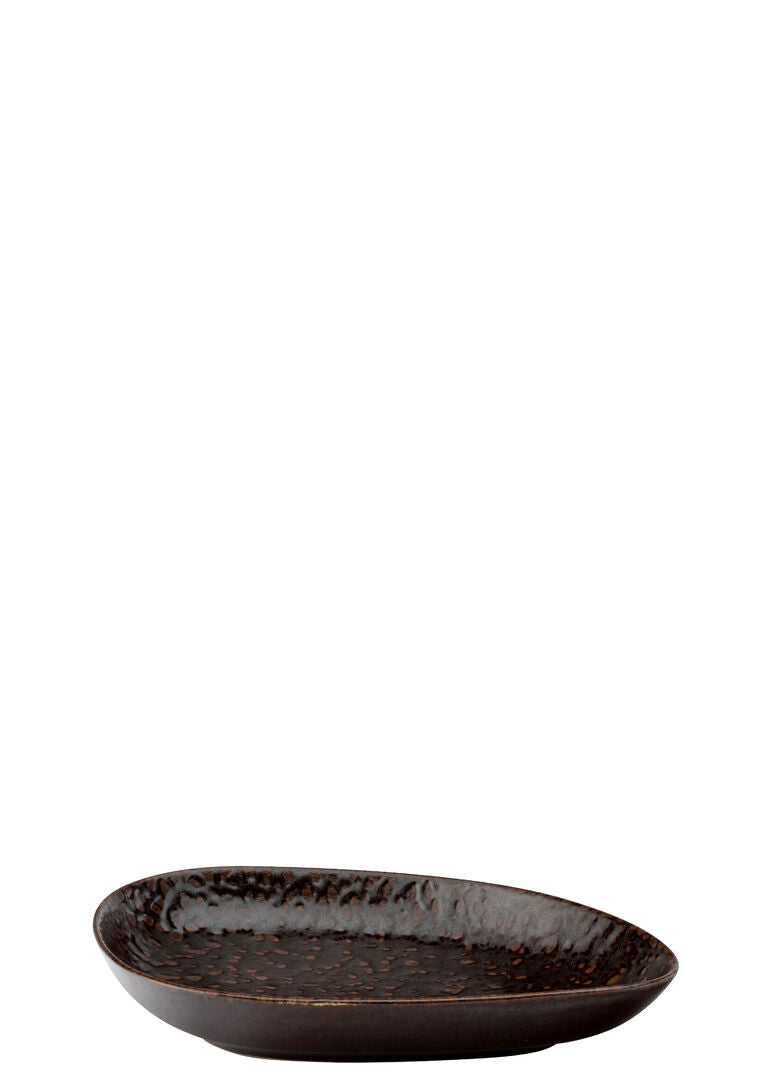 Stoneware side dishes designed for professional catering, restaurant service, and modern food presentation. Featuring an irregular organic shape and a dark brown, metallic-effect glaze, these side dishes create a distinctive visual impact inspired by textured, hammered metal finishes.