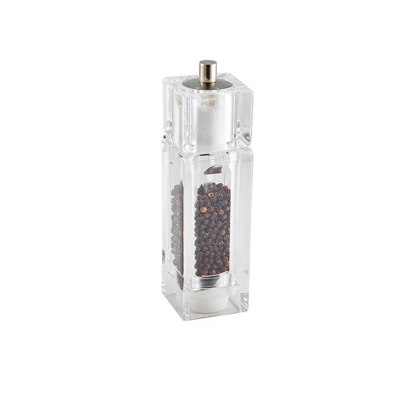 Clear Acrylic Square Combo Pepper Grinder and Salt Shaker – 2-in-1 Adjustable Ceramic Mechanism – 16.5cm Tall (Pack of 6)