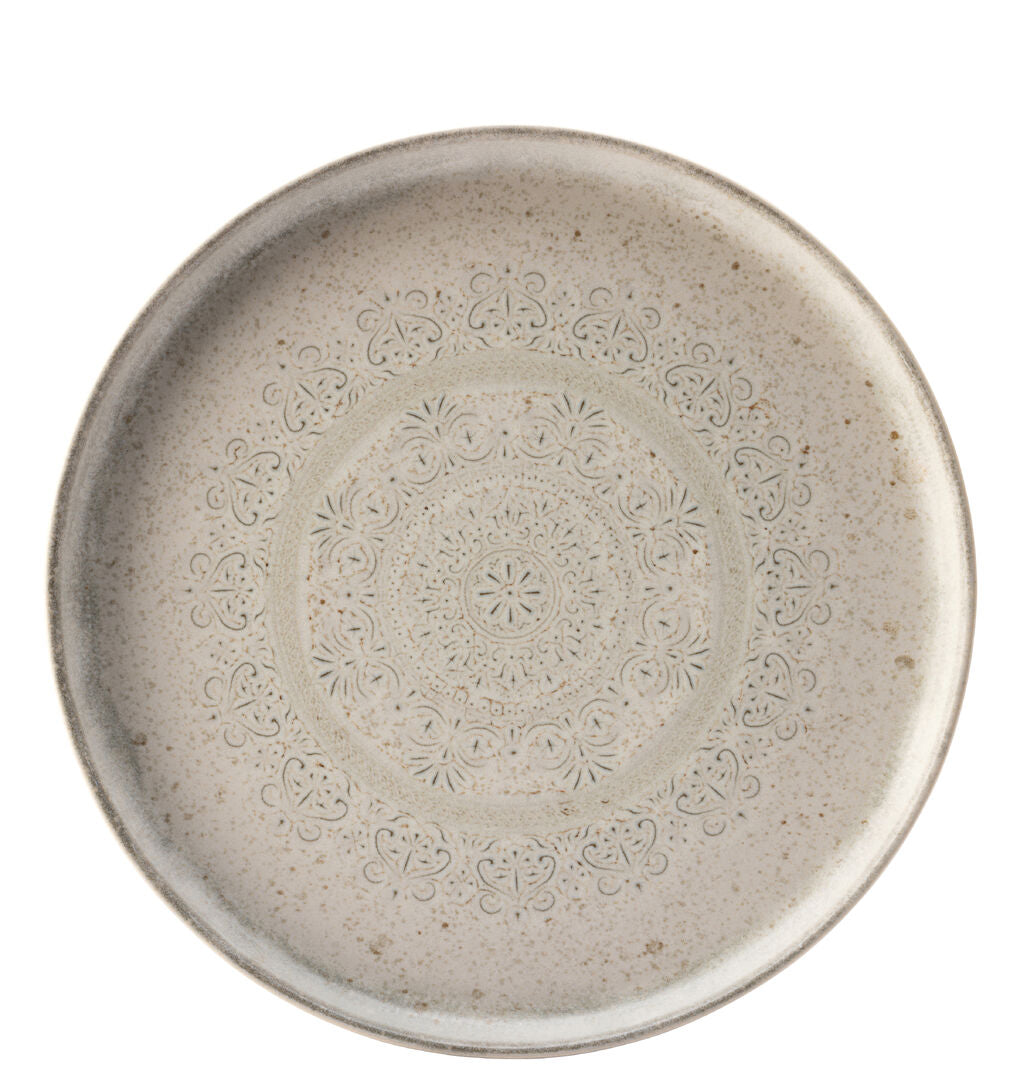 Caro stoneware coupe plates designed for professional catering, restaurant service, and modern dining experiences. Featuring a delicate cream and white design with a charming pattern, these plates bring sophistication and understated elegance to the table.