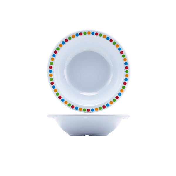 Melamine Coloured Circles Oatmeal Bowl 15.2cm White – 30cl Capacity – Chip, Scratch & Stain Resistant – Pack of 12