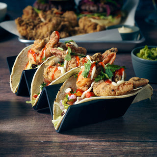 Matt Black Melamine Fast Food Stand with 2 Slots for Tacos or Hot Dogs – 20×10×5cm, Stackable Catering Display (Pack of 12)