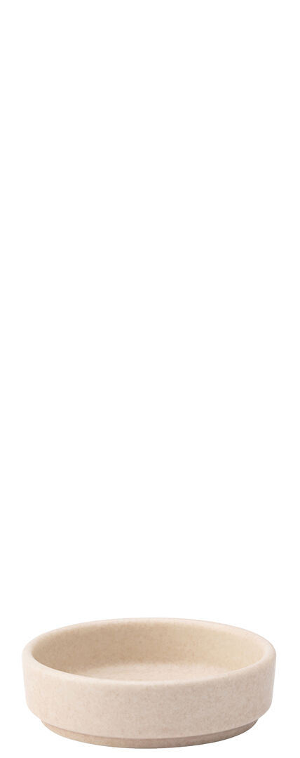 Walled porcelain dip pot designed for professional catering, restaurant and table service. Finished in a soft pink, dappled satin glaze, this compact pot is ideal for serving dips, sauces, condiments and tasting portions while enhancing modern food presentation.