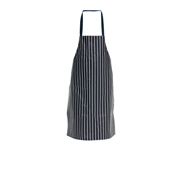 - Heavy-duty PVC apron with classic butcher stripe pattern, designed for professional kitchens and food-handling environments.