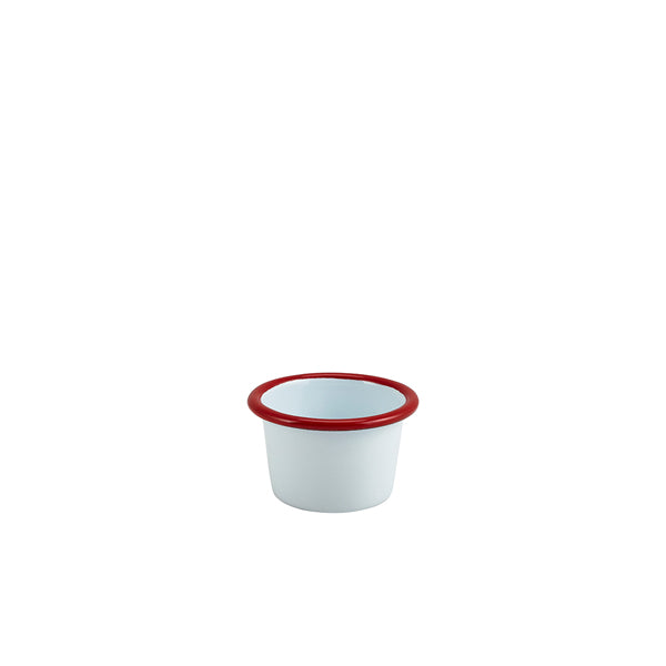 Enamel Ramekin White with Blue/Grey/Red Rim 7cm/8cm 90ml/3.2oz Porcelain-Style Steel Bowl for Serving Sauces, Dips, and Starters in Café Restaurant and Home