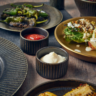 Porcelain Terra Black Fluted Ramekin 7cl for Dips Desserts/Tasting Portions Pack of 12
