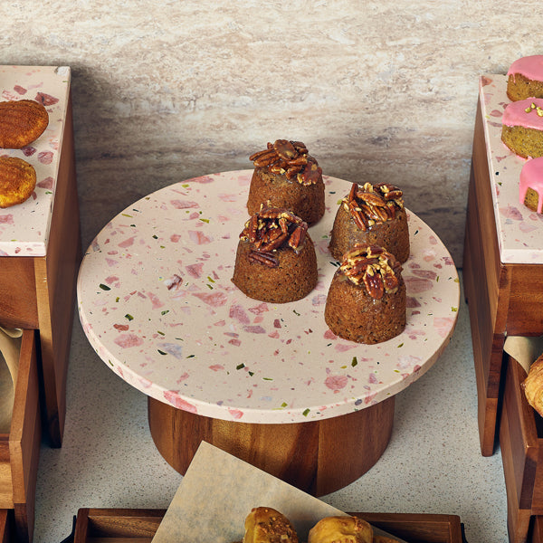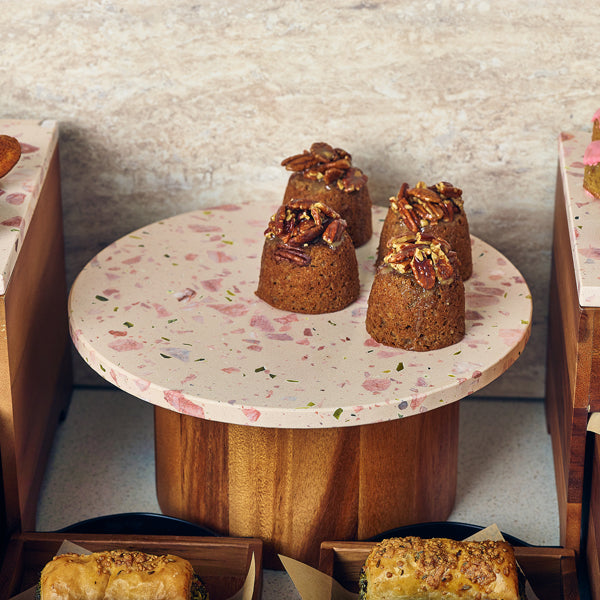 Round Terrazzo Serving Platter 33cm Diameter with Non-Slip Feet for Buffet Food Presentation & Table Display