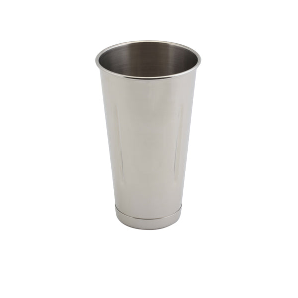This stainless steel malt cup is designed for use with most commercial milkshake mixers, providing a durable and practical vessel for preparing American-style milkshakes. Its classic tapered shape supports efficient blending while offering an attractive alternative to traditional glassware.