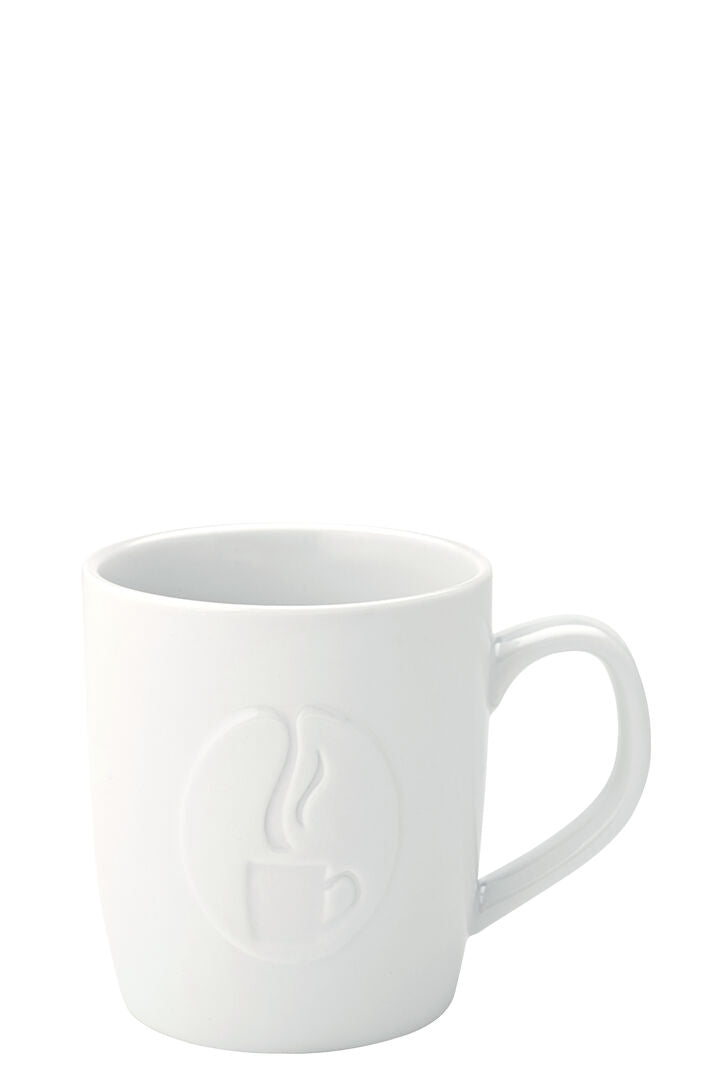 Titan Java Embossed Mug 15.5oz (440ml), Porcelain, White, Set of 6, Ideal for Coffee & Tea