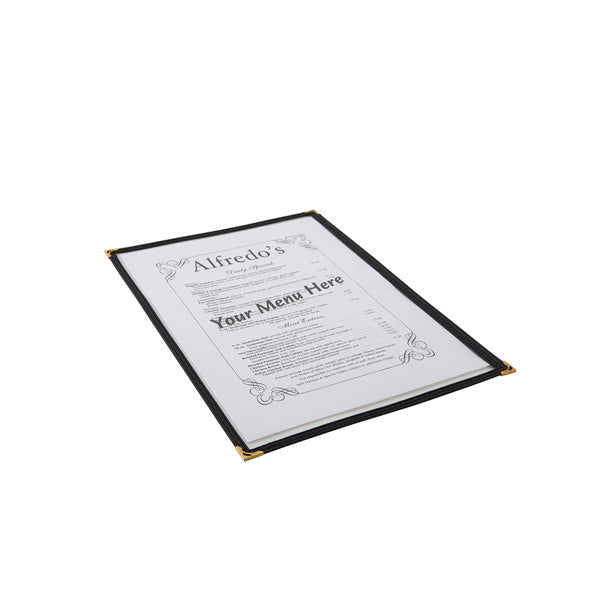 American Style Clear Menu Holder A4 Size - Black - Reinforced Metal Corners