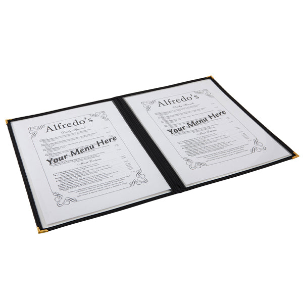 Present your menus in a professional and durable way with the American Style Clear Menu Holder A4, available in 1-page or 2-page formats. Designed for heavy commercial use, these holders feature clear plastic panels with stitched black edging and reinforced metal corners for added strength and longevity.