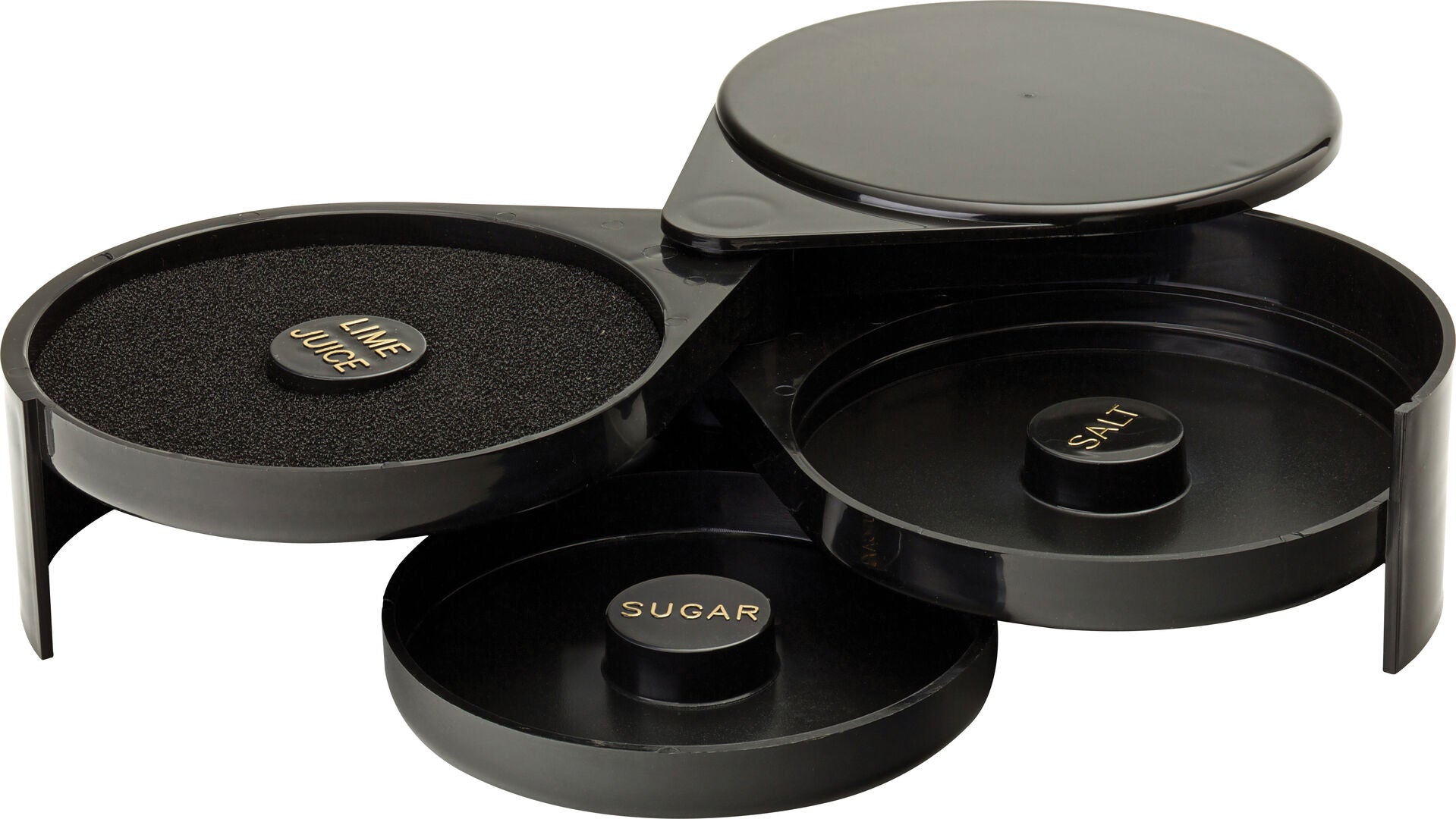 3 Tier Glass Rimmer, Black Plastic Design, Lime Sugar & Salt Trays, Folding Bar Accessory