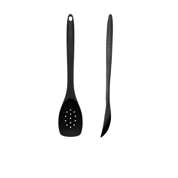 Black Silicone Slotted Spoon – Heat Resistant Food Grade Utensil 30cm