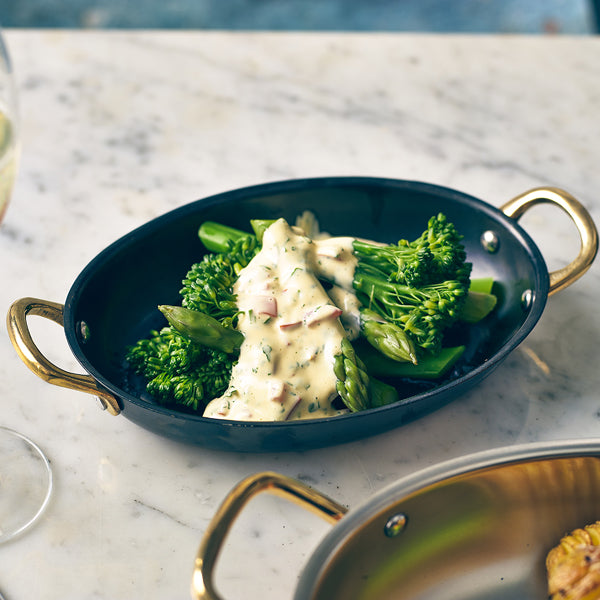 Black Vintage Steel Oval Dish with Brass Handles, PVD-Coated Stainless Steel Serveware 12oz/ 17.6oz – Pack of 6