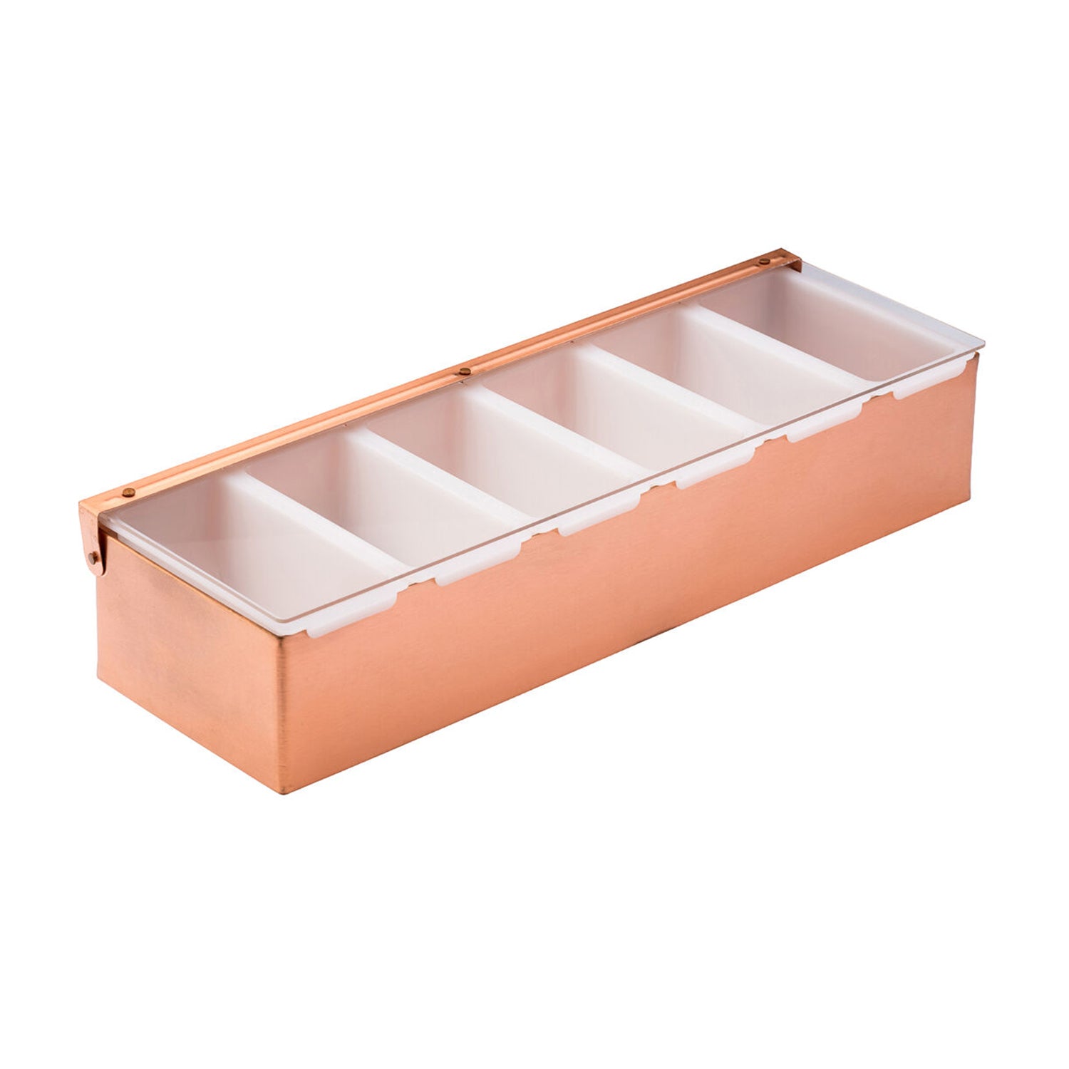 Copper Plated Stainless Steel Condiment Holder with Clear Lid, 4 or 6 Compartment Insert Bar Caddy