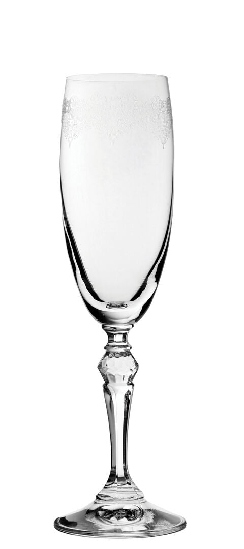 Filigree Champagne Flute 6oz (17cl) Crystal Glass – Etched Sparkling Wine Flutes, Pack of 24