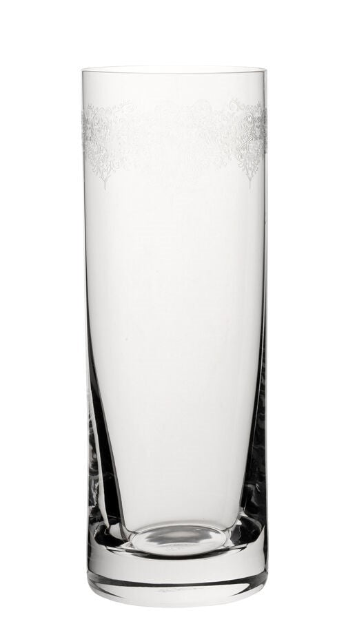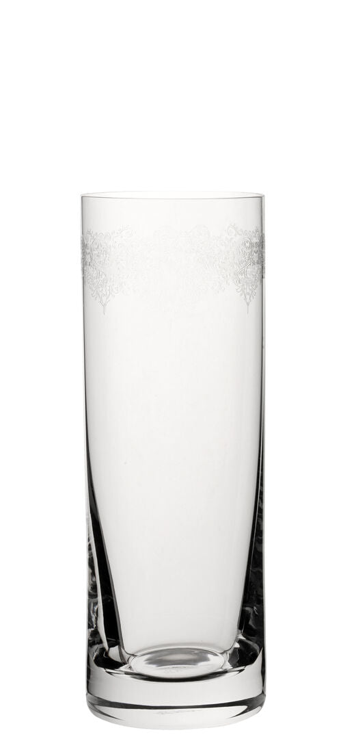 Add a touch of refined elegance to your drinkware with the Filigree Long Drink 12oz (34cl). Beautifully crafted from fine crystal glass, this tall tumbler features delicate pantograph-style etching that brings a sense of classic luxury to everyday drinking. The slender profile is ideal for long drinks, cocktails, and refreshing mixed beverages, while the intricate detailing enhances visual appeal without overpowering the design. Perfect for stylish home entertaining and professional hospitality settings alike.