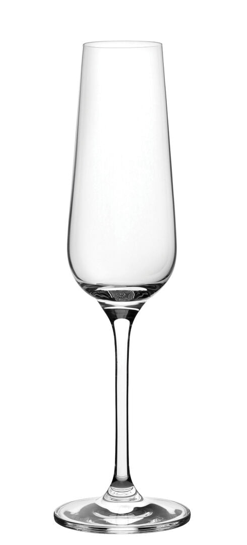 The Invitation Flute 6oz (18cl) by Rona offers a contemporary interpretation of the classic champagne flute. With a slim profile, gently tapered bowl, and elegant slender stem, this flute is designed to preserve carbonation while enhancing the visual appeal of sparkling wines.