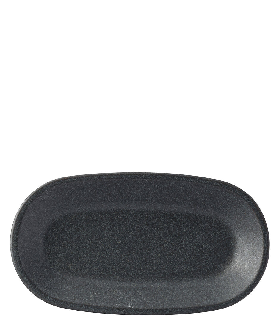 Professional deep coupe oval plates designed for modern food presentation in hospitality and catering environments. Finished in a dark black reactive-style glaze, these oval plates provide a refined, contemporary backdrop ideal for showcasing starters, mains, and shared dishes.