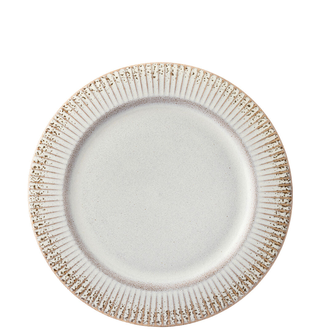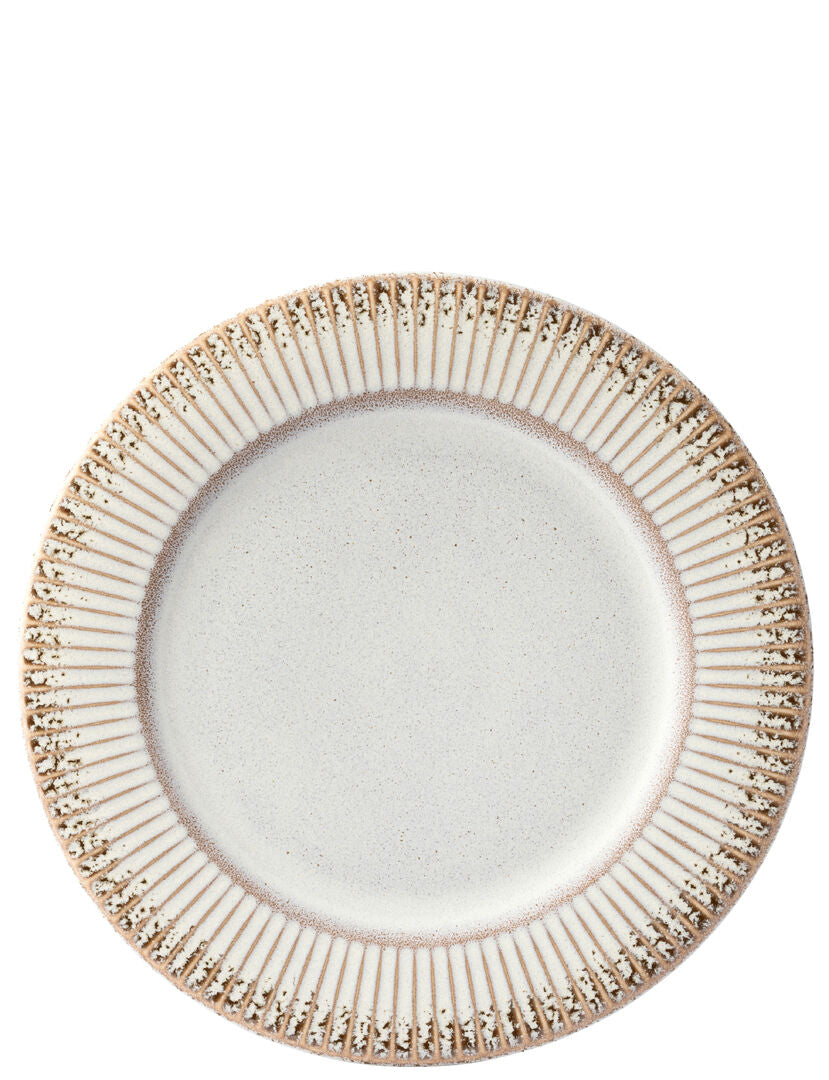 • Stoneware plates from the Corduroy Drift Edge range with textured detailing.