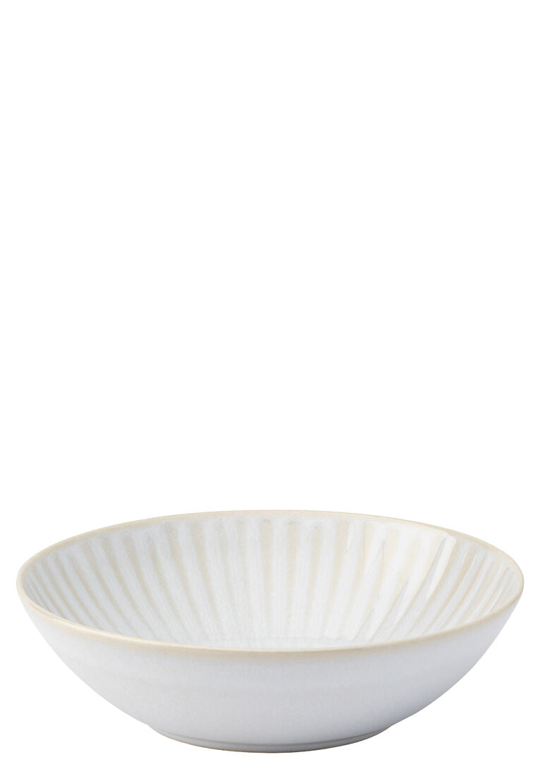 White stoneware coupe bowls designed for professional catering, restaurant service, and buffet presentation. Featuring a refined scalloped interior with subtle colour detailing, these bowls provide a clean and elegant presentation suitable for a wide range of hospitality settings.