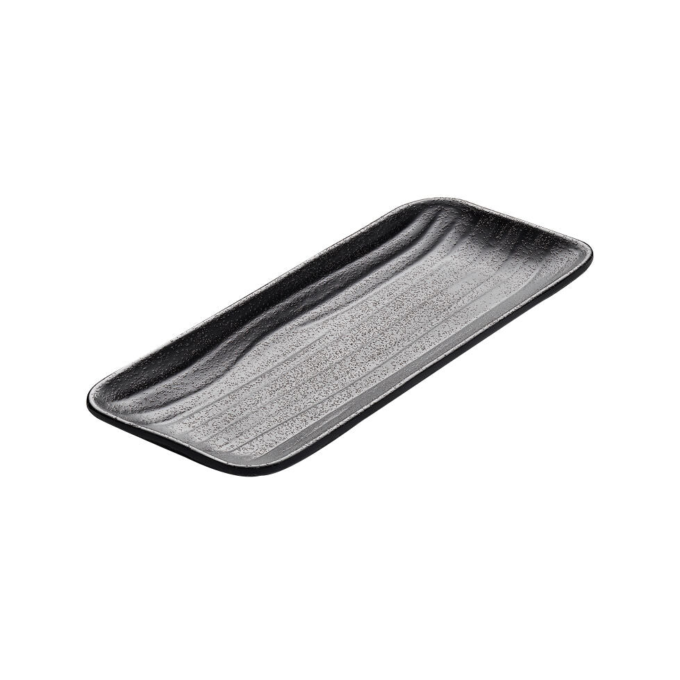 Manufactured from high-quality melamine, this tray features a refined matte black finish with subtle surface texture, making it ideal for serving sushi, appetisers, tasting portions, and small shared dishes.